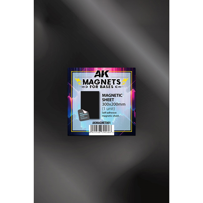 Self-adhesive precut magnetic sheets for game figures. The sheets have a surface area of 300×200 mm and are pre-cut to the standard wargaming base dimensions.