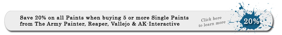 This category contains all the paints & paint related products that we carry in the store, which includes products from Reaper, The Army Painter, Vallejo, Hobbyzone, Winsor & Newton & AK-Interactive.