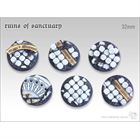 On the "Ruins of sanctuary" Baseset are the remains of a sacred building. Decorative bands contain Latin verses and some pieces of the wall are decorated with crosses. These are ideal for armies with clerical background, a brotherhood, paladins, priests or similar armies.