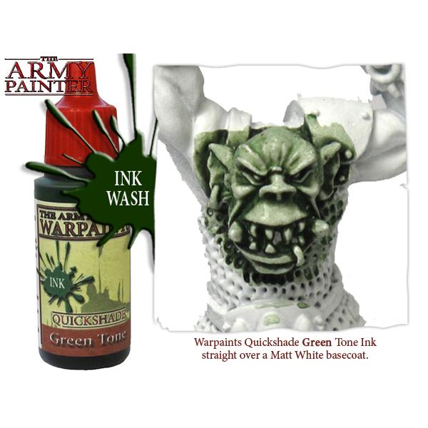 The Quickshade Green Tone Ink is loaded with deep green and heavier dark pigment in the popular Warpaints ink resin base. Use on top of white for an instant green toned and shaded miniature or on top of all greens, Necrotic Flesh or even Barbarian flesh for the putrid look. As all the Quickshade Inks, it looks stunning on a metal primer for that Nurgle look. Shading and colour toning in one wash.